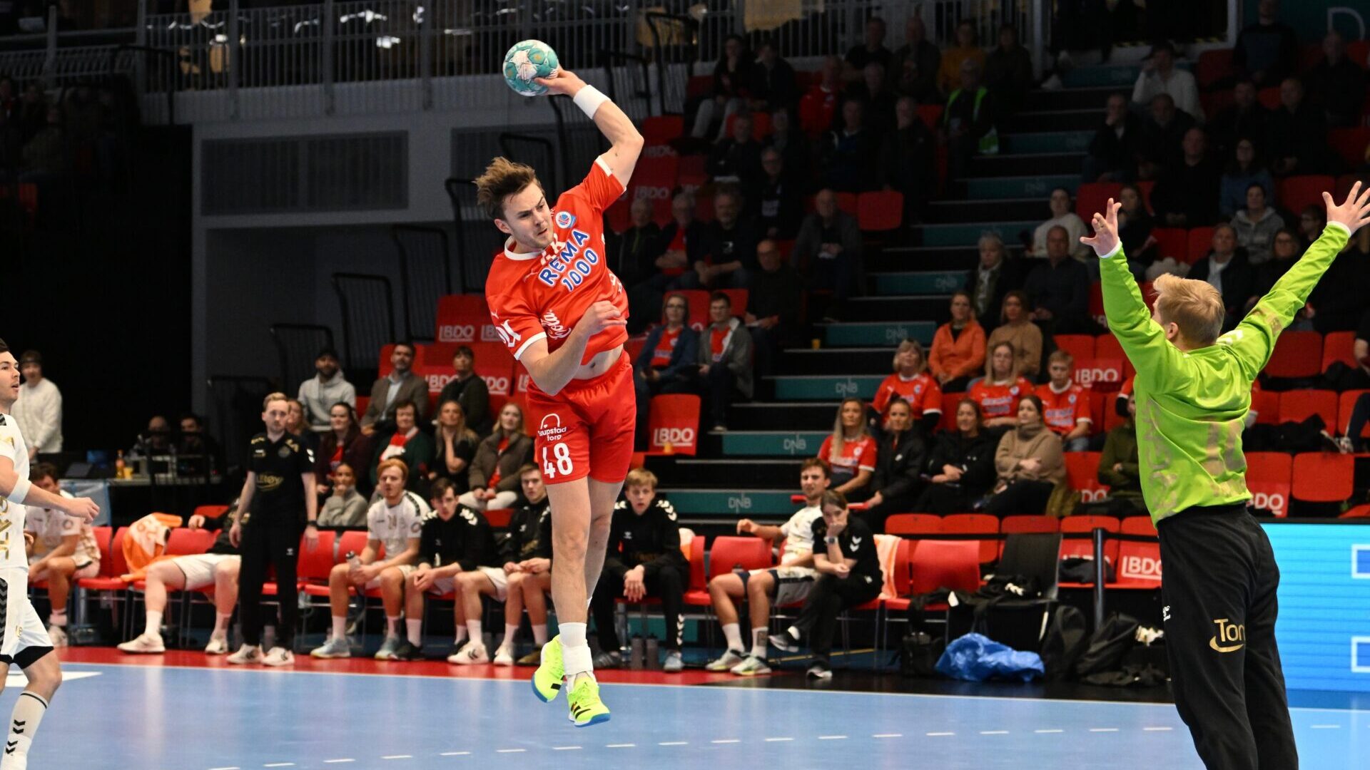 Gøran (bildet) var ustoppelig, Sigvaldi var både ballsnapper, sprinter og utmerket eksekutør – traff på alle sine seks skudd den omgangen han spilte. Gullerud inne på streken traff på alle sine tre skudd før pause, og Adrian på ytre venstre var igjen trygg og god, 75 prosent uttelling.