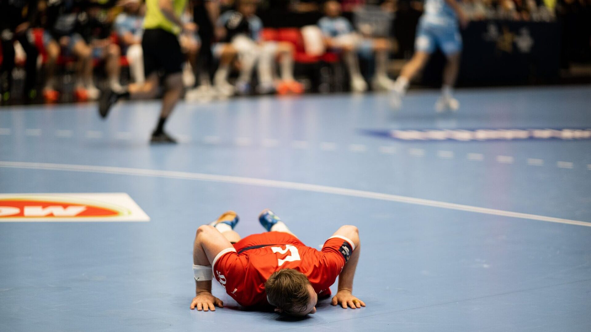 Da kampen var halvspilt, hadde vi bare scoret ni mål, men hadde svidd like mange i dueller alene med Landin. Ni mål på 30 minutter er naturligvis langt, langt under vanlig score. At vi slapp inn bare 14 før pause forteller at det var den offensive skoen som trykket definitivt mest: Vi kom alene med Landin på kontra og alene også i etablert spill. Landin reddet, reddet og reddet – eller presset skuddene utenfor mål.